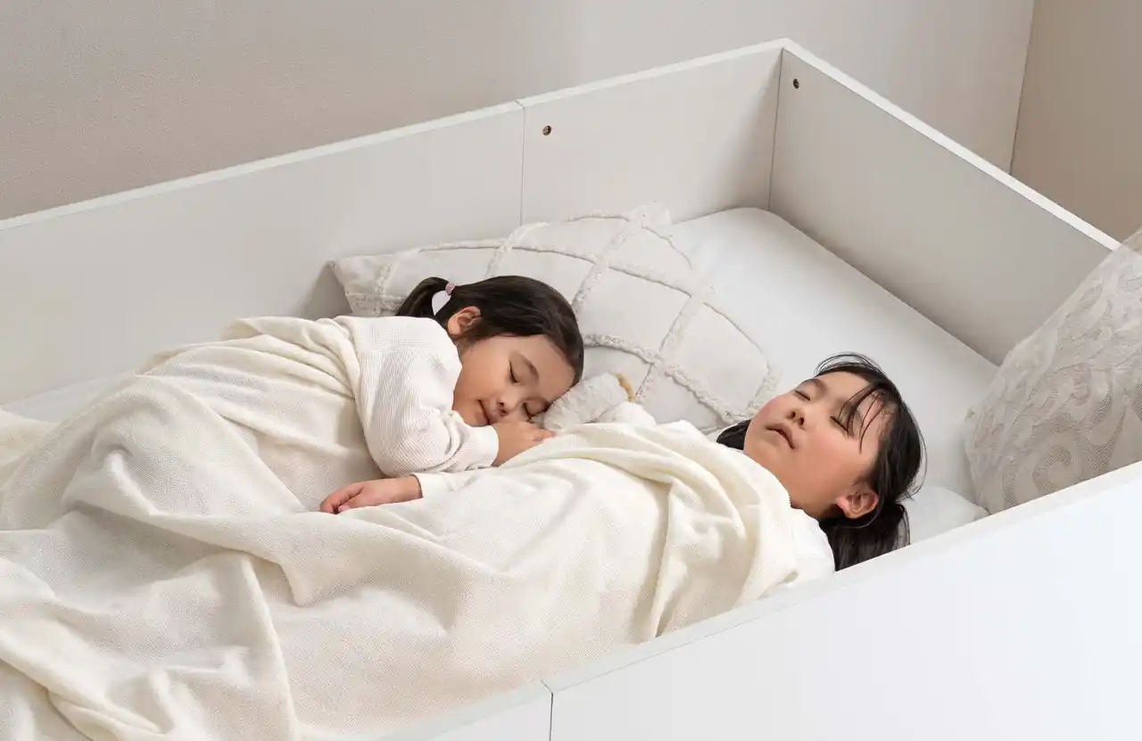 これにより、寝返りの多いお子様でも落下の心配が少なく、一人寝を始めたばかりのお子様でも、朝まで安心してぐっすりと眠ることができる睡眠環境を実現しています。 |