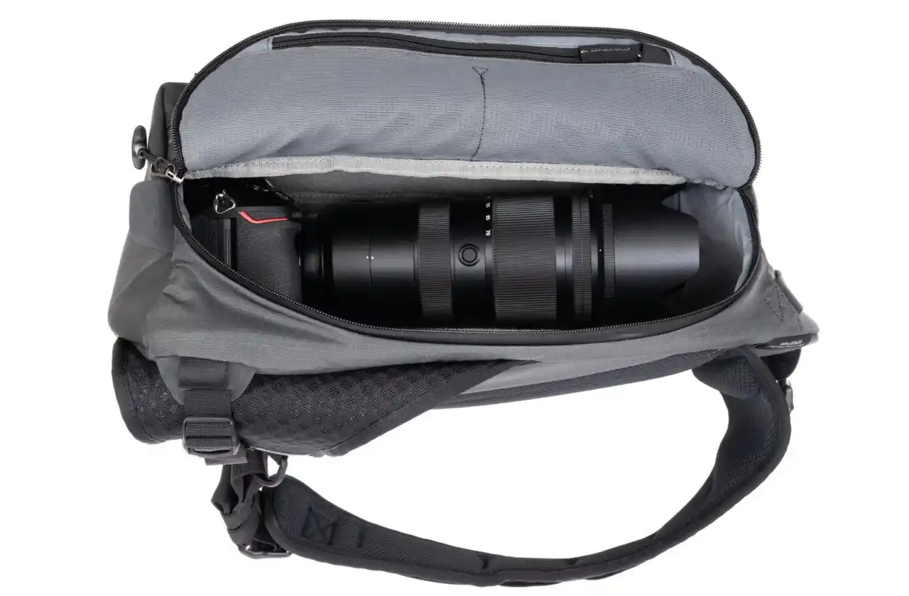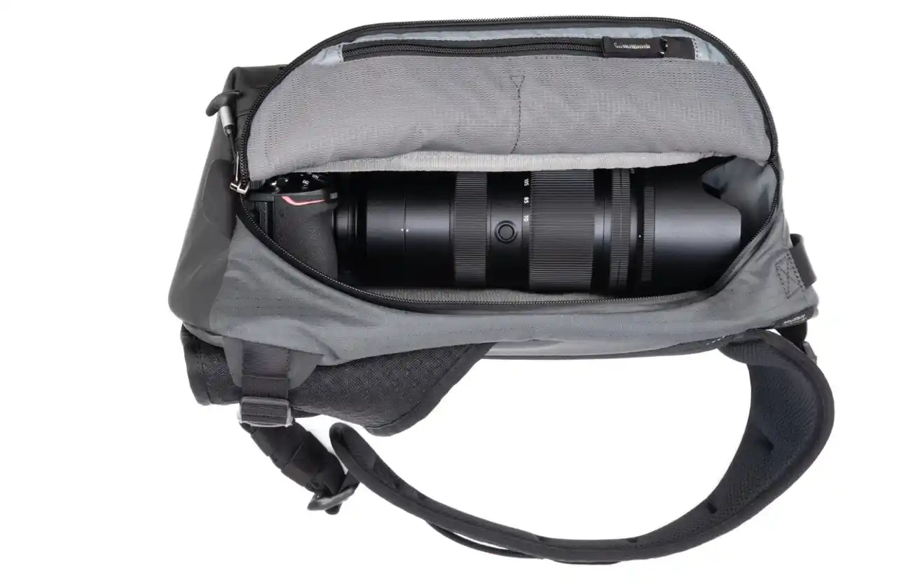 また、ジッパーで開閉する上蓋からもメインコンパートメントへアクセスができ、素早く機材の出し入れができます。 |