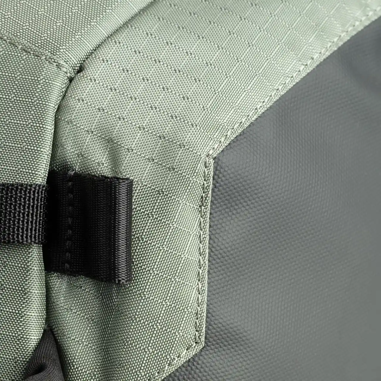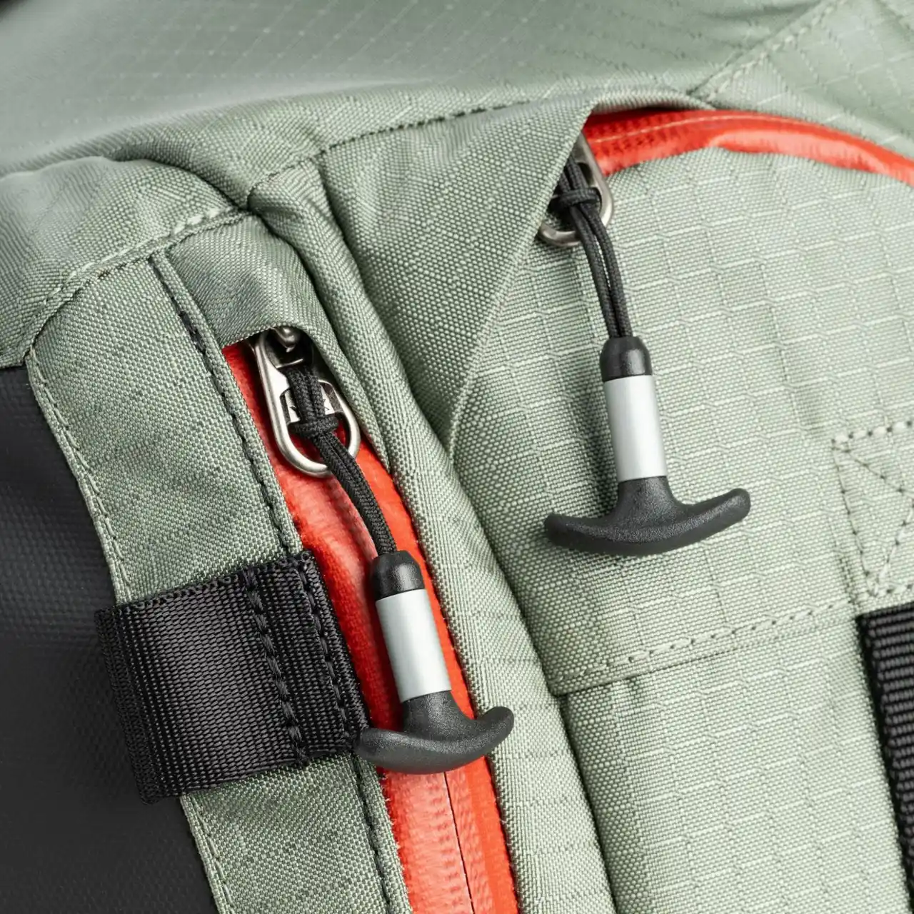 メイン生地に、耐摩耗性に優れたCORDURA(R) 915Dと、引き裂きに強い420D リップストップナイロンを採用。枝の引っかかりや岩場での擦れなど、アウトドア特有のリスクから機材を守ります。 |