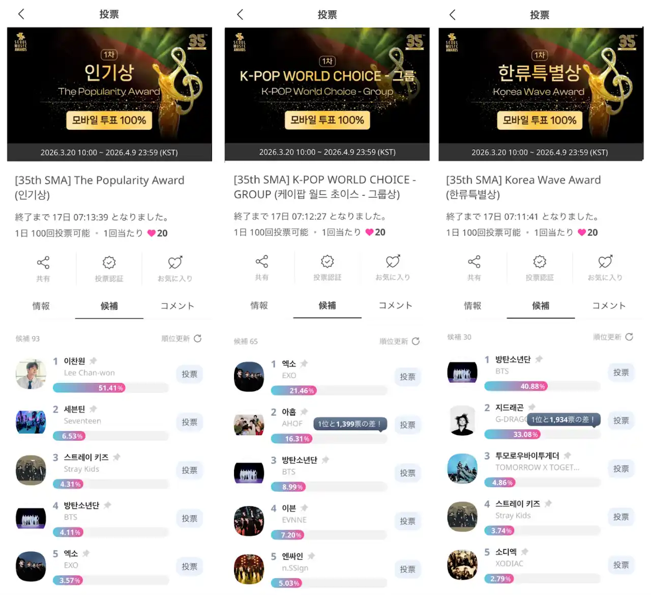 ■「第35回ソウル歌謡大賞」公式投票をIDOL CHAMPで独占開催! |