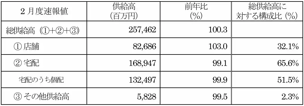 | ~店舗と総供給高は前年超え、宅配は前年割れ~ |