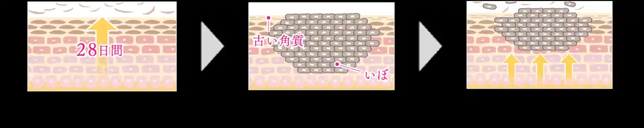 「いぼ」は、肌代謝が滞り、うまくターンオーバーができずに、古い角質が肌表面に残っている状態です。 |