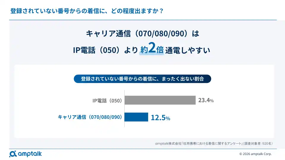 携帯番号(070/080/090)の通電しやすさは、IP電話(050)の約2倍 |