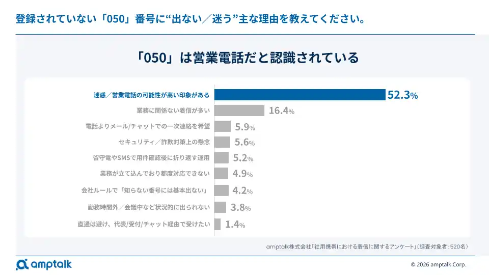 050番号に出ない最大の理由は「営業電話」という認識 |
