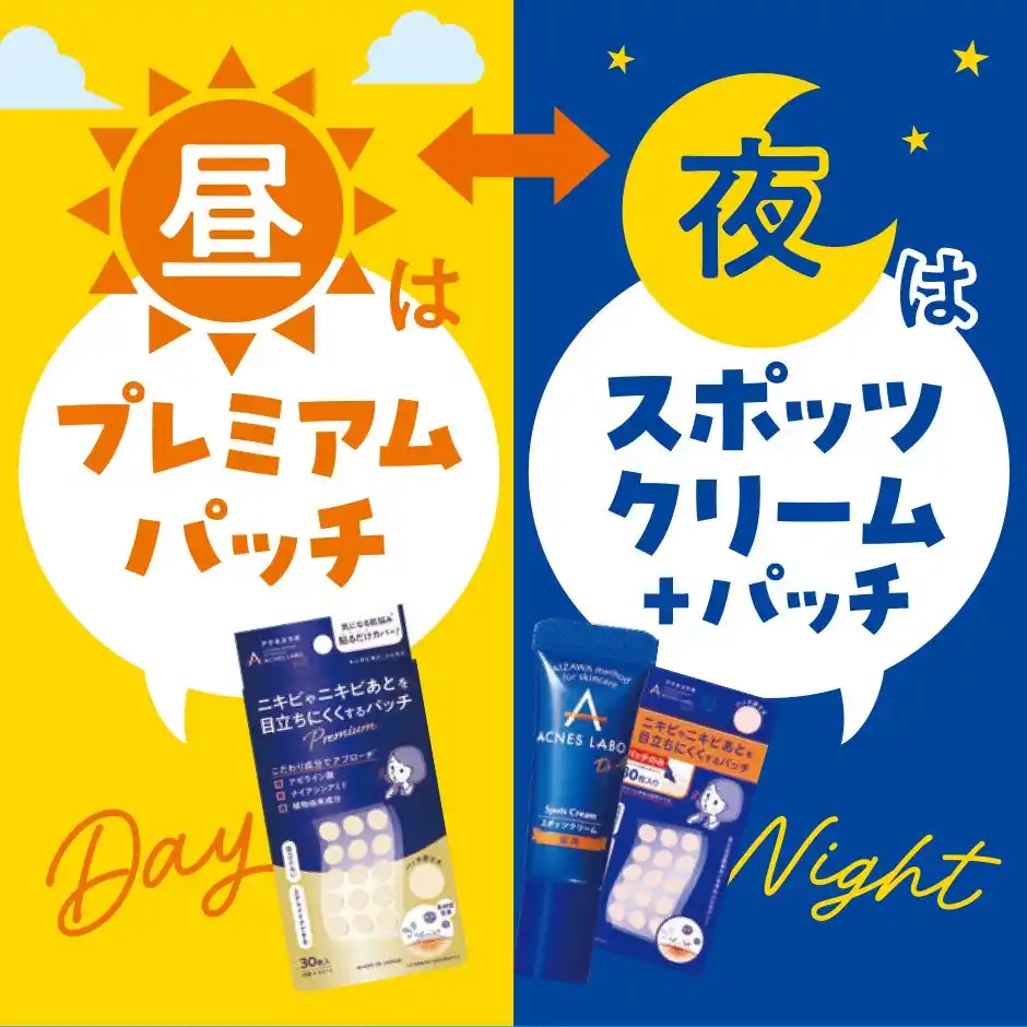 新商品のプレミアムポイントパッチと、定番のスポッツクリームを、昼夜のサイクルで使い分けることで、お肌に寄り添い、理想の素肌づくりをお手伝いします。 |