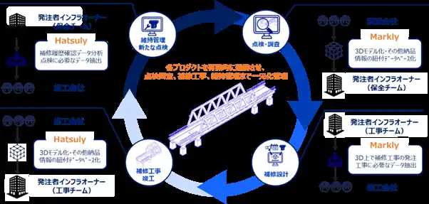 今回の「Hatsuly」のVE昇格および活用促進技術への選定により、施工・出来形管理フェーズにおける3Dデータ活用の有効性が公的に認められました。今後は、Hatsulyで取得した施工データを属性情報として次工程の維持管理へとシームレスに引き継ぐなど、プロダクト間のデータ連携をさらに深化させます。 |
