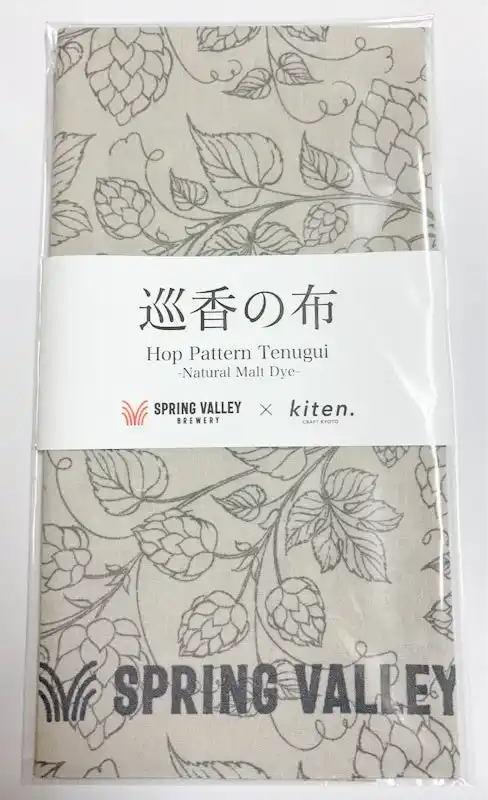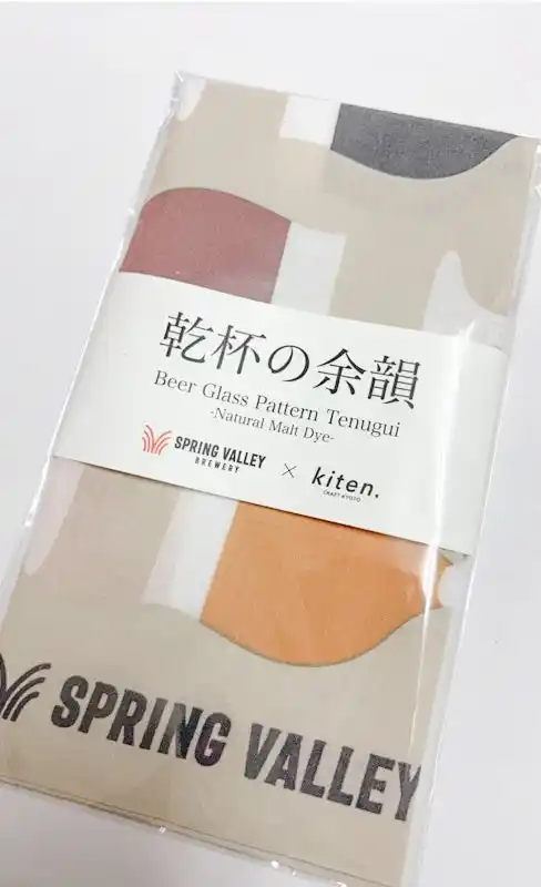 京都で70余年にわたり旗や暖簾の製作を手がける株式会社加藤健旗店(京都市中京区)が展開する、暮らしと仕事に寄り添うブランド「kiten.」は、スプリングバレーブルワリー株式会社(以下 SVB)と共創し、SVB京都でのクラフトビール醸造工程で生まれる「仕込み粕(主に主原料である麦芽の粕)」を活用した天然染料の手ぬぐいを、2026年3月24日(火)より数量限定で発売いたします。 |