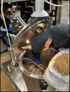 タンクから手作業で仕込み粕を集めます。 |