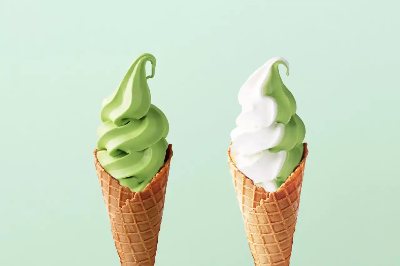 あさぎり牛乳の濃厚で爽やかなミルクソフトと、静岡県産抹茶ソフトのミックス。 |