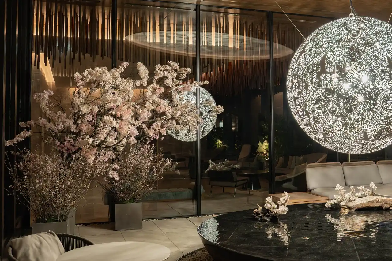 ことしもTIAD5階の水盤テラスに桜の装飾がお目見えいたしました。テラスはパブリックスペースですので、どなた様も桜をご覧いただけます。また、隣接するオールデイダイニングのテラス席やバーカウンターからも桜を愛でることができ、ロゼワインフェア、ピエール・エルメ・パリ「ショートケーキ イスパハン」ご提供期間とも重なりますので、お花見気分でお食事やドリンクをお愉しみいただけます。 |