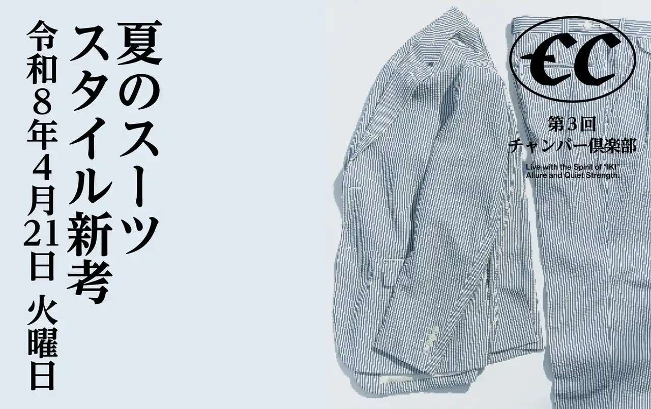 | Chamberfellows(チャンバーフェローズ)は、ブランドの世界観に共鳴する会員を対象としたコミュニティイベント「チャンバー倶楽部」を開催いたします。第3回のテーマは、「夏のスーツスタイル新考」です。 | ||||||||