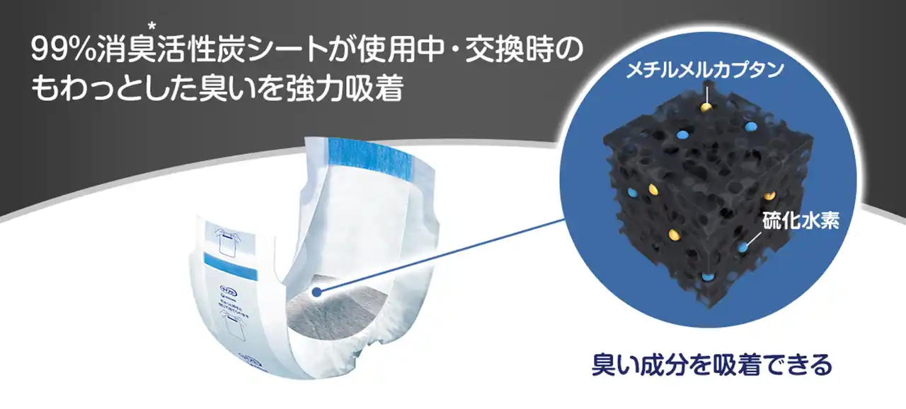 (1) 活性炭配合で99%消臭※2の「活性炭シート」で、高齢者の尿特有のニオイを強力に吸着 |