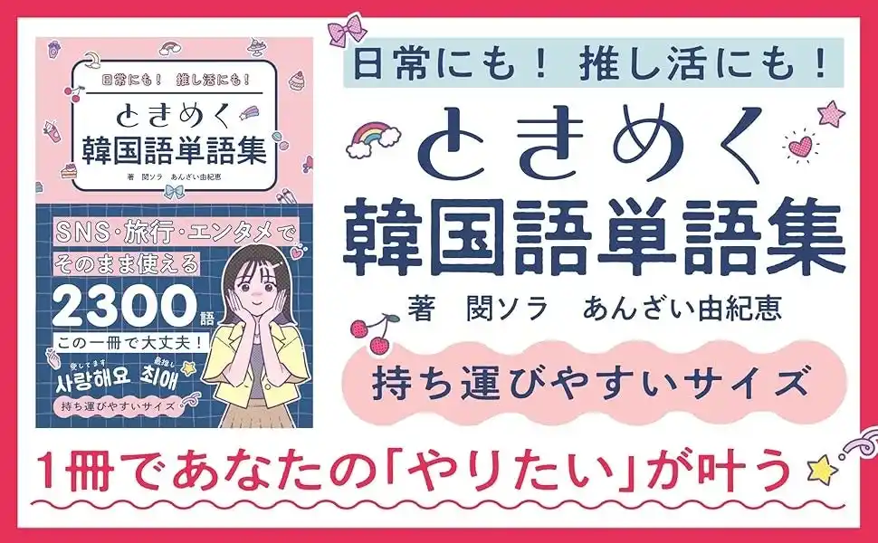| 音楽、ファッション、美容、グルメ、SNS……Kカルチャーを思いっきり楽しむための、生きた韓国語の単語集です。持ち運びやすいポケットサイズで、旅行や遠征にも便利です。 | |||||||||||