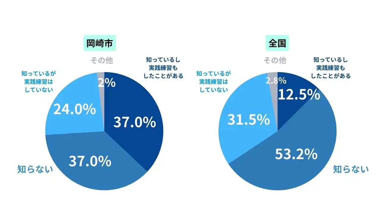 | 半数以上は未認知であり、さらに3割は「知識はあるが実践経験がない」状態にあることがわかった。 | |||