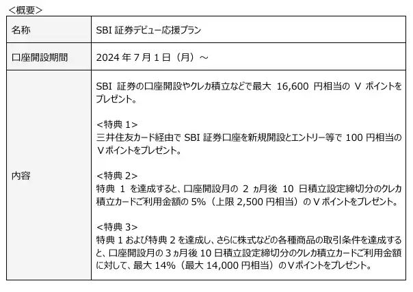 ■キャンペーン3:SBI証券デビュー応援プラン 最大16,600円相当のVポイントプレゼント |