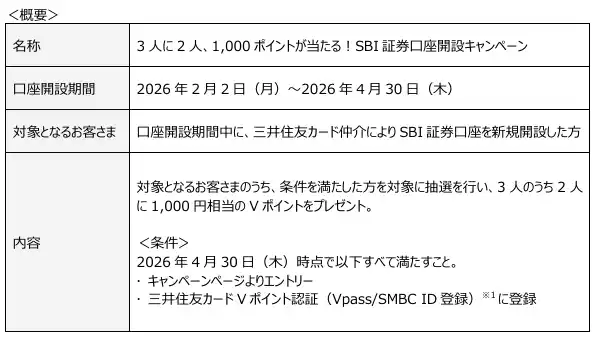■キャンペーン2:3人に2人、1,000ポイントが当たる!SBI証券口座開設キャンペーン |