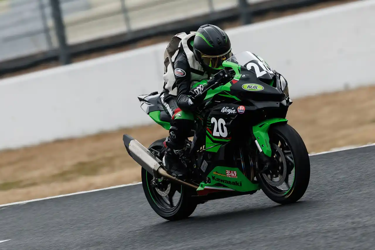 Ninja Team Green Cupはレース未経験者・初心者向けのNinja ZX-25Rワンメイクレースです。独自のレギュレーションにより、公道走行に近い状態で手軽にレース参戦ができることが大きな特徴で、レース未経験者・初心者でも挑戦できるレース入門イベントとして、沢山のライダーのレースデビューを後押ししています。 |