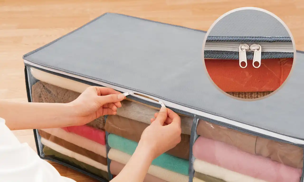 間仕切りが付いており、たっぷりの収納力で分類して整理整頓ができるので、衣替えも楽々スッキリ。 |