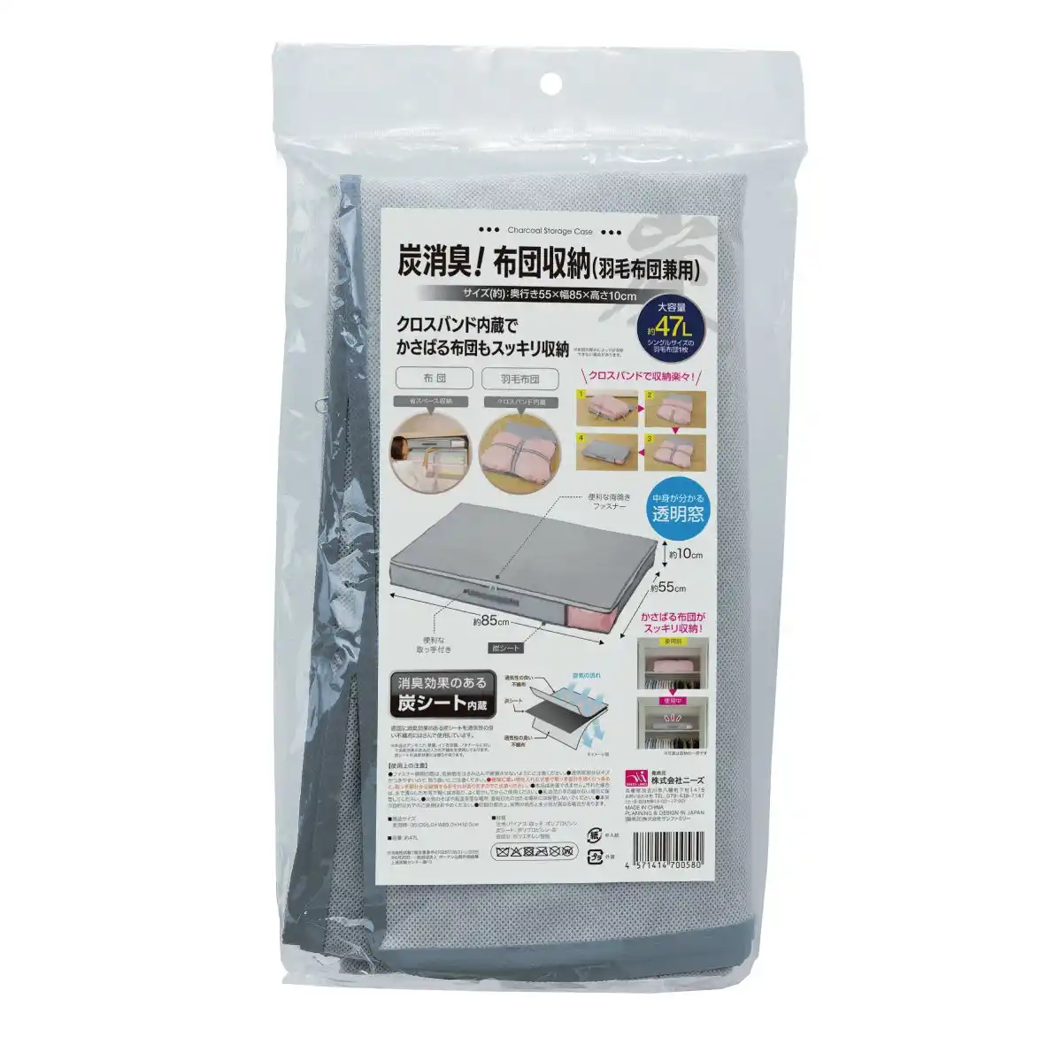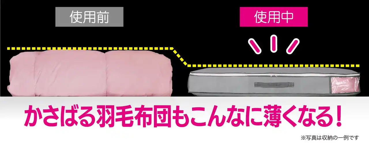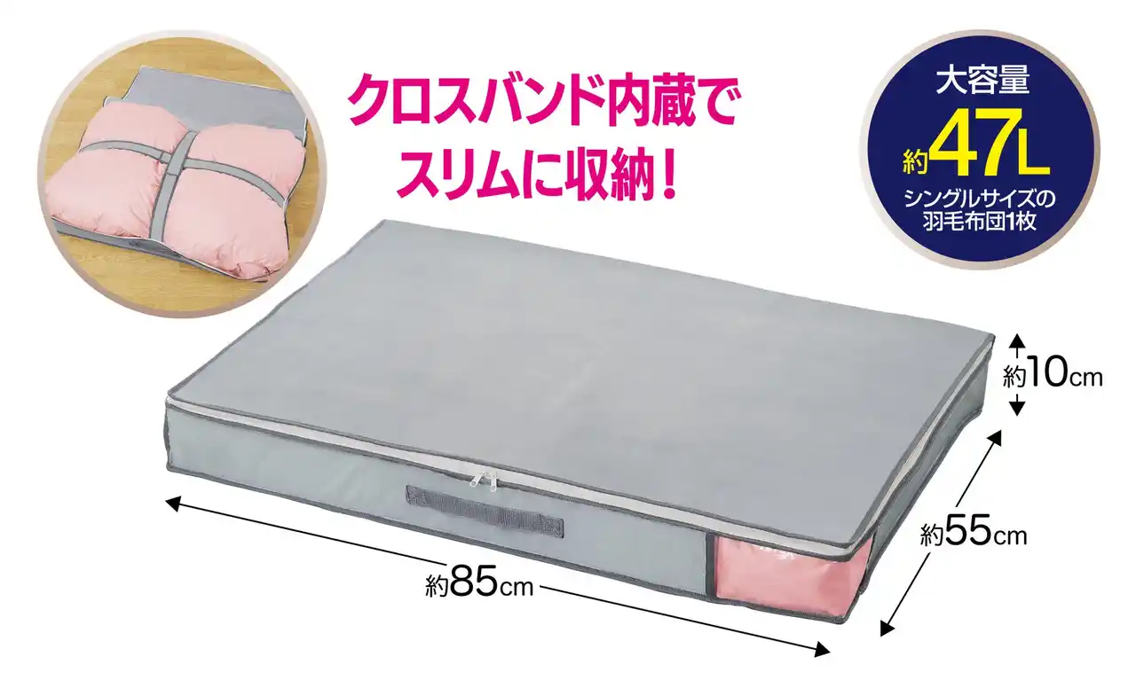 クロスバンド内蔵でかさばる布団もスリムに!「炭消臭 布団収納(羽毛布団兼用)」 |