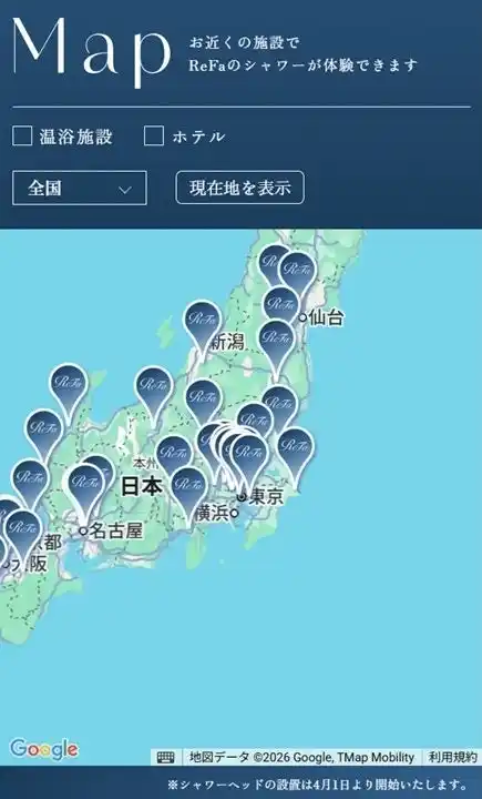 全国47都道府県・約70施設の温浴施設にReFaファインバブルシャワーを2026年4月1日より順次設置し、6月30日まで、各施設約3か月間展開を予定しています。 |