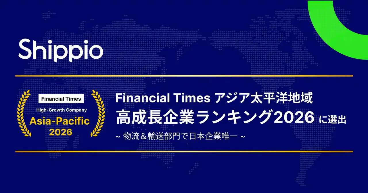 貿易DXを推進し「Shippio Platform」を運営する株式会社Shippio(本社:東京都港区、代表取締役CEO:佐藤 孝徳、以下Shippio)は、英・経済紙 Financial Times社と、独・統計調査会社 Statista社が共同で実施した「アジア太平洋地域における高成長企業2026(High-growth companies Asia-Pacific 2026)」に選出されたことをお知らせいたします。また、「Logistics & Transportation(物流&輸送)」部門においては、アジア太平洋地域全体で第4位を獲得し、日本企業としては唯一の選出となりました。