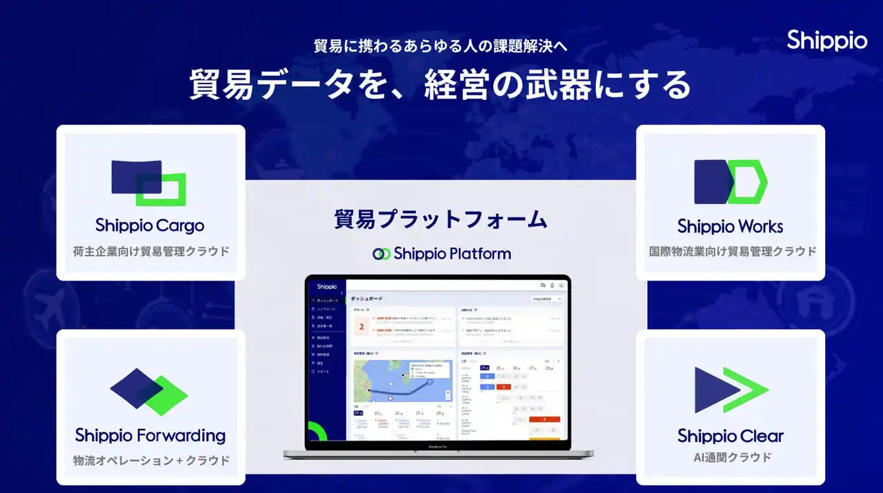 Shippioは荷主企業から国際物流事業者、通関業者に至るまでサプライチェーンに関わる多様なステークホルダーに向けたプロダクトを開発し貿易プラットフォーム「Shippio Platform」を運営しています。 |