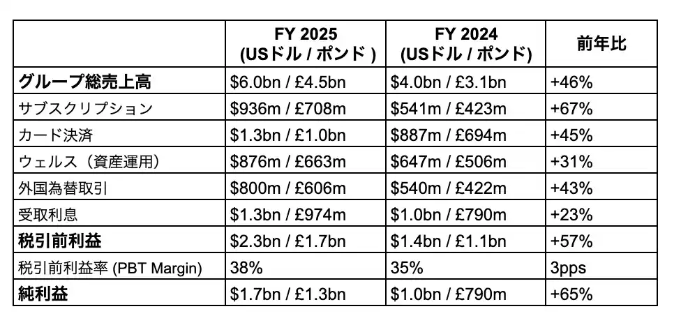 レボリュートグループは、急速な成長と構造的な利益率の拡大、そして収益の多角化を高いレベルで両立させ、過去最高の業績を達成しました。 |