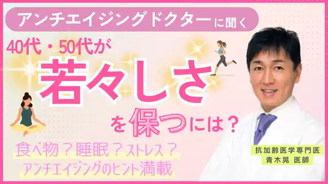 「アンチエイジングのために、40代以降に積極的に摂るべき食べ物とは?」という質問に対し、日々の食生活で意識したいポイントをご紹介しています。 |