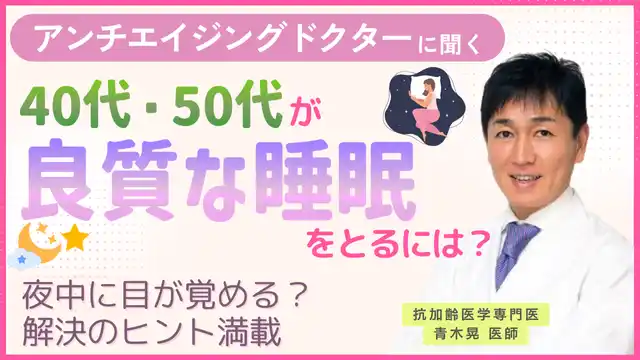 「50代に入ってからアンチエイジングに関係する良質な睡眠が取りにくくなりました。 何か対策できることはありますか?」という質問に対し、睡眠の質を向上させるためにできることについてご紹介しています。 |