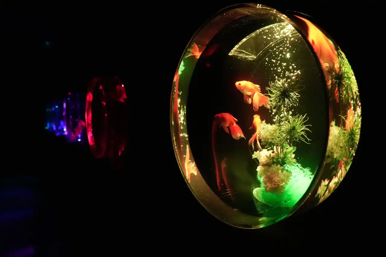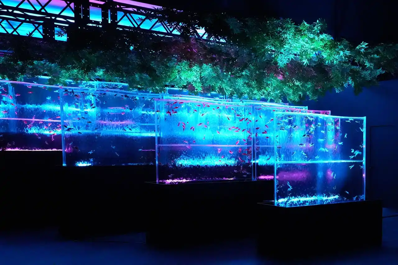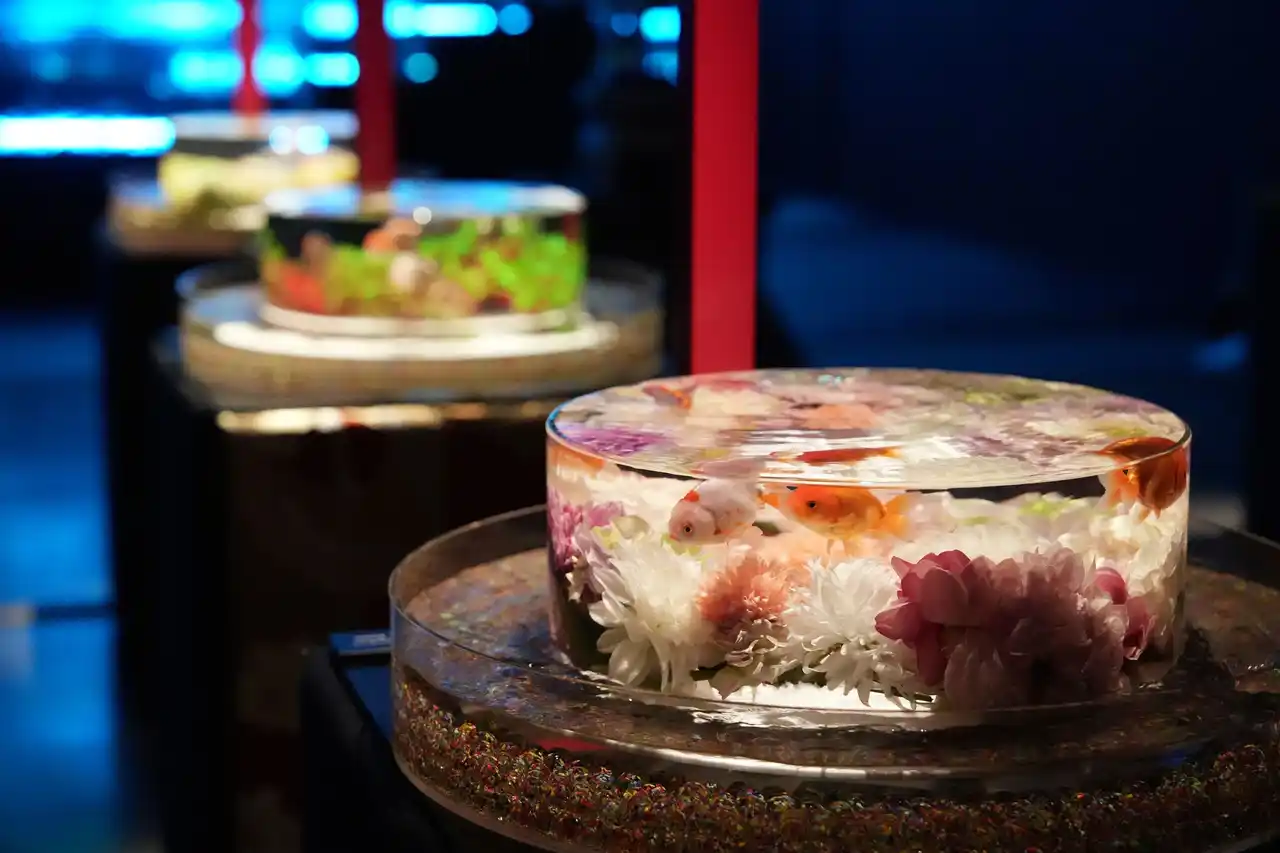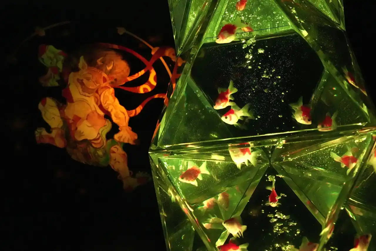 金魚泳ぐ水槽作品を光・香・音で演出する没入型エンターテインメントアート |