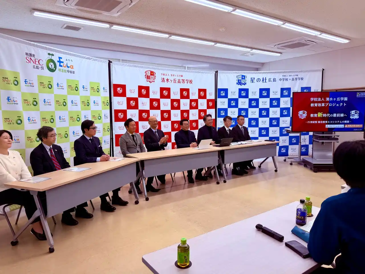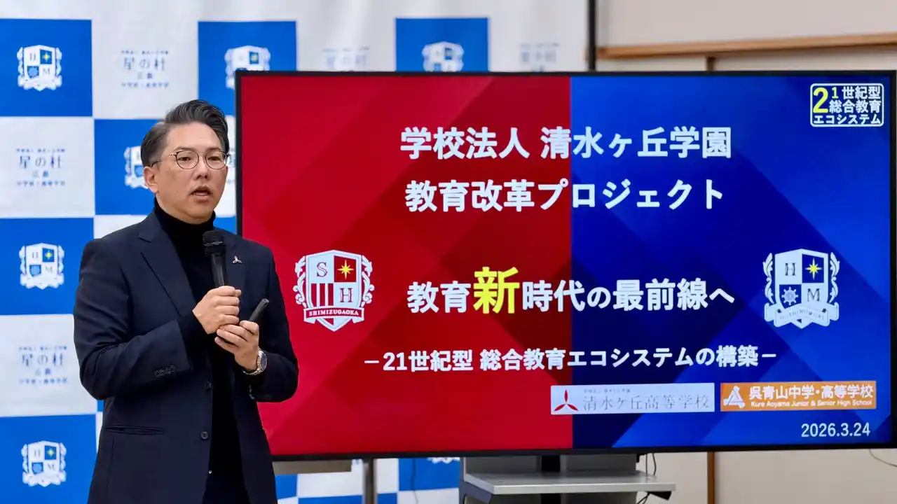 2026年3月24日(火)、広島県呉市の学校法人清水ヶ丘学園にて記者会見を開催し、宇都宮海星学園の石川 一郎 理事長と、清水ヶ丘学園の山本 訓史 理事長が登壇。 |