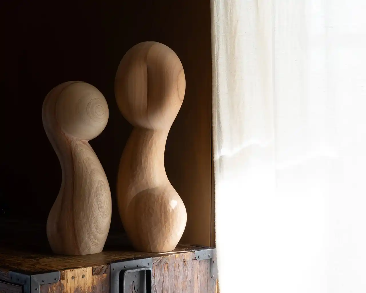 素材にはウォールナットやメープル、チェリーなどの広葉樹が用いられ、木が本来持つ色や木目、質感を活かしながら一点一点手作業で削り出されます。削りの痕跡を残す有機的なフォルムと、磁力によって成立する構造が組み合わさることで、静かなバランスの上に成り立つ造形が立ち上がります。 |