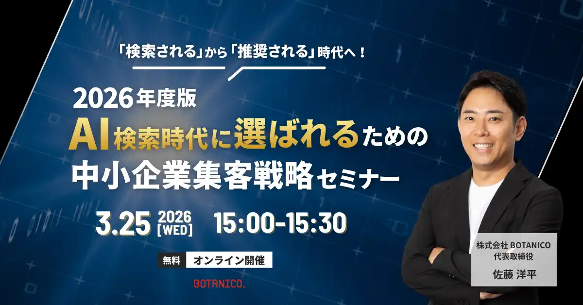 2026年度版|AI検索時代に選ばれるための中小企業集客戦略セミナー開催!【開催時間変更|15:30開始】