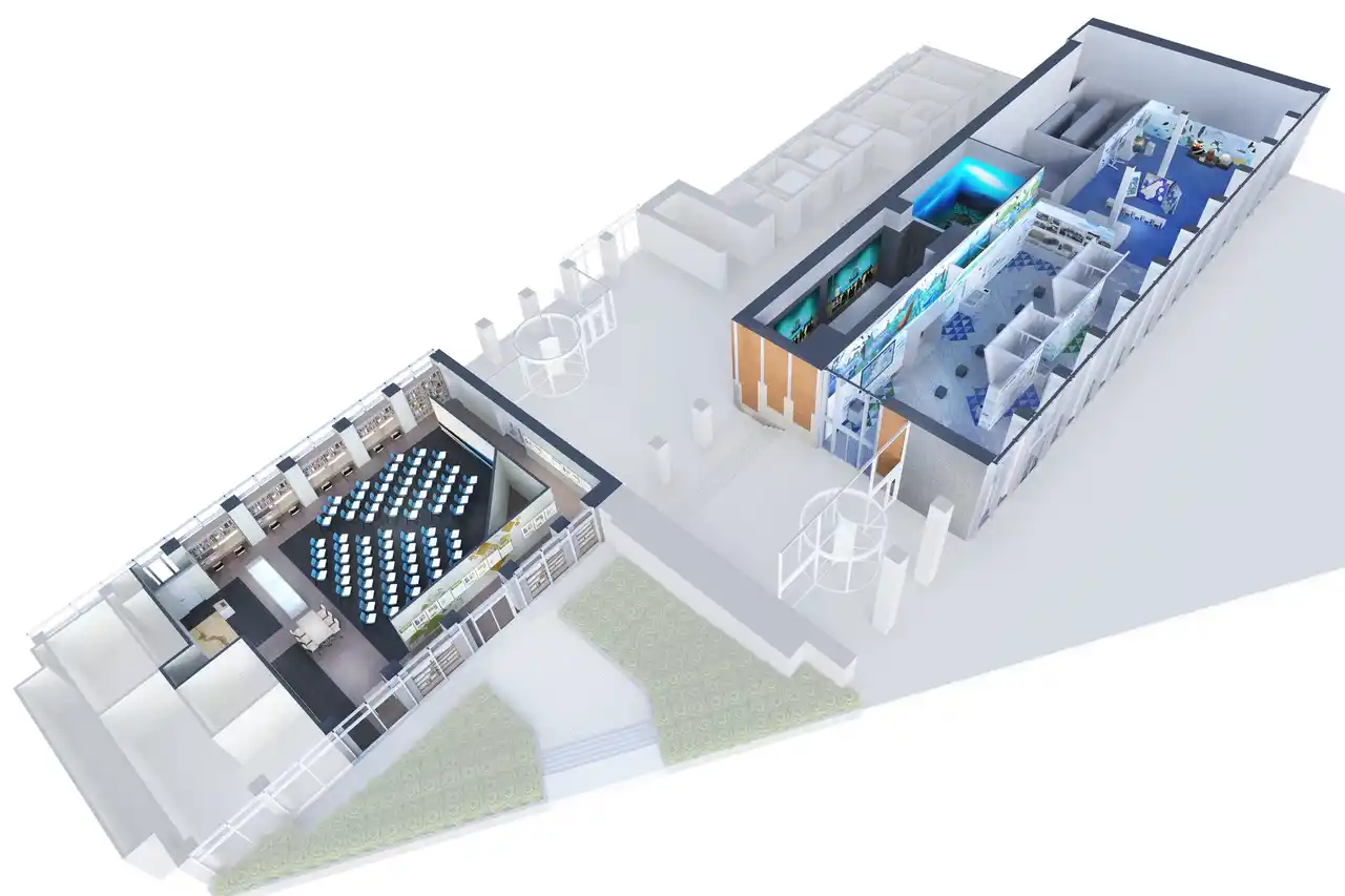 昨年11月に拡張オープンしたゲートウェイホールは、学習指導要領を踏まえ、日本の領土や海洋全般をテーマに「聞く」「調べる」「考える」「議論する」など、多目的に学びを深める空間として活用しています。 「日本の島々や海について知ることは、世界を知る入口(Gateway)となる」-そんな想いを込めて名付けられました。 |