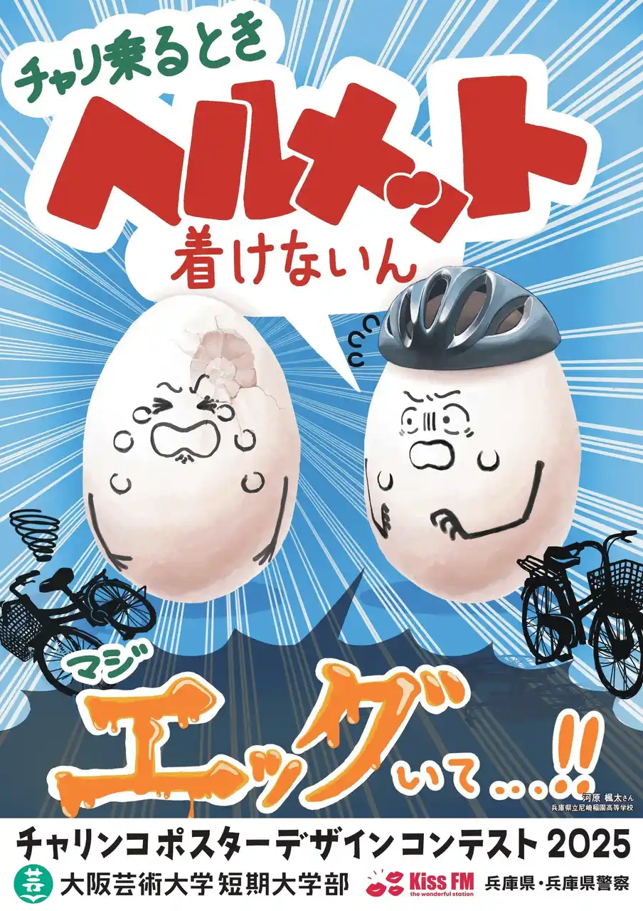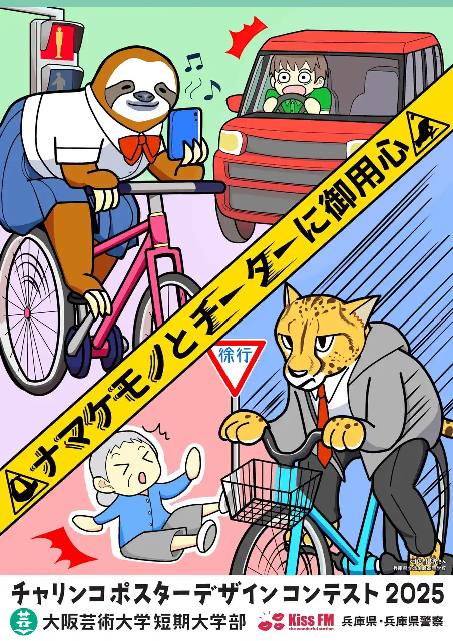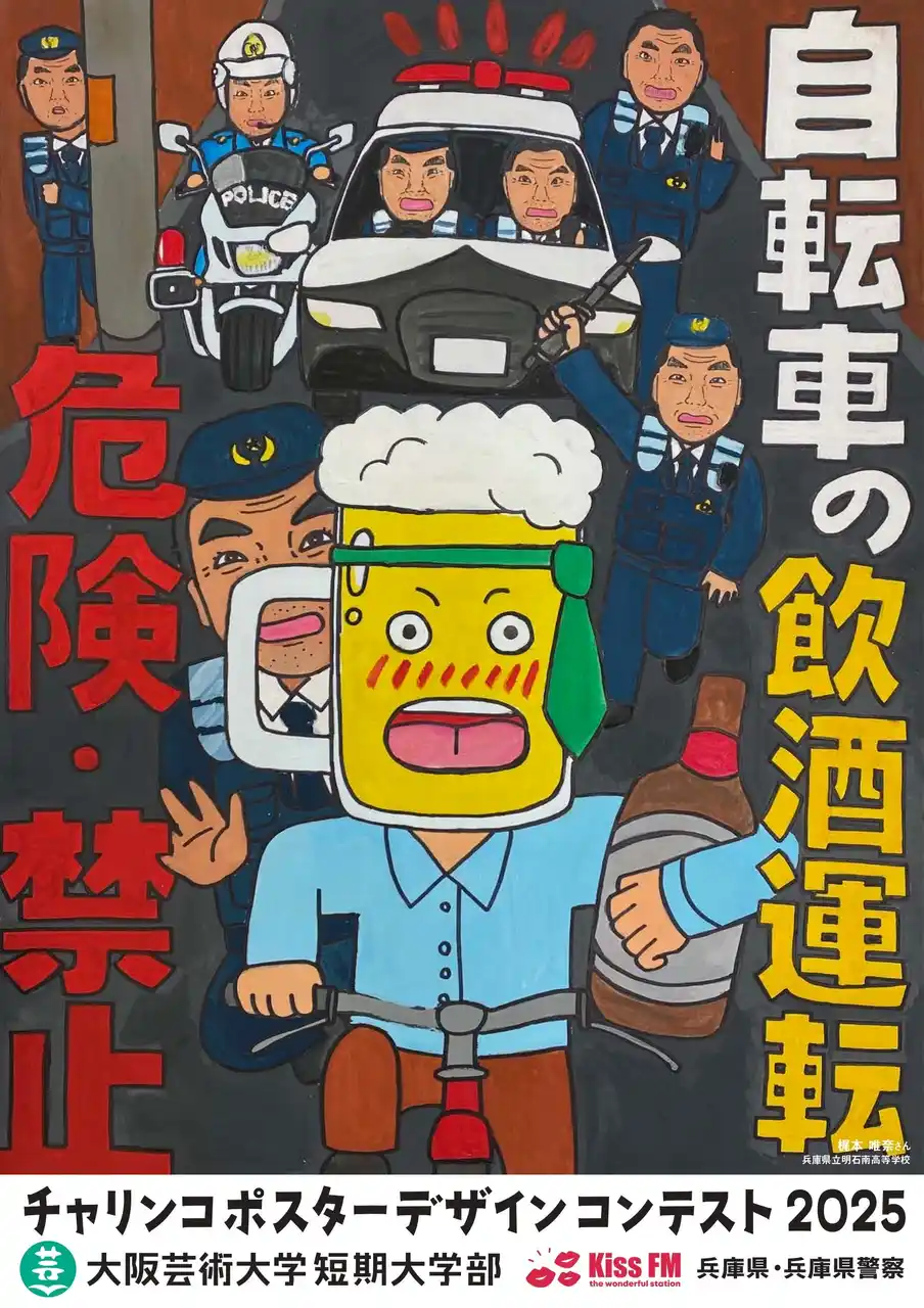 大阪芸術大学短期大学部(所在地:兵庫県伊丹市/学長:塚本 英邦)はKiss FM KOBE と共同で、兵庫県および兵庫県警察の後援のもと、高校生を対象とした「チャリンコポスター デザインコンテスト2025」の表彰式を2026年3月7日に開催しました。通算9回目を迎える本事業は、高校生の柔軟なアイデアを実際の交通安全啓蒙に活用する産学官連携の社会実装プロジェクトとして展開しています。 |