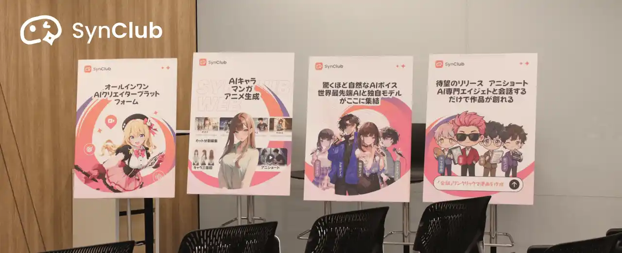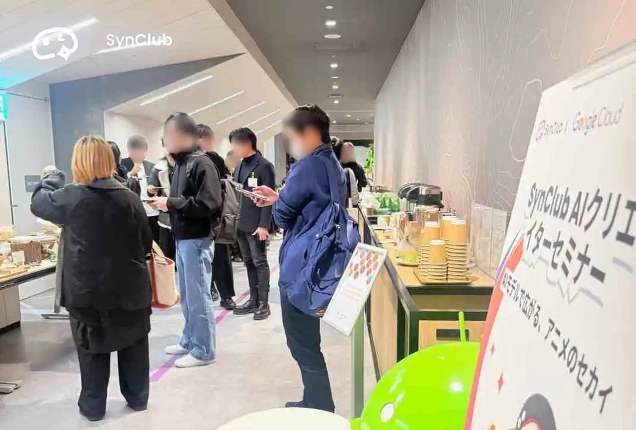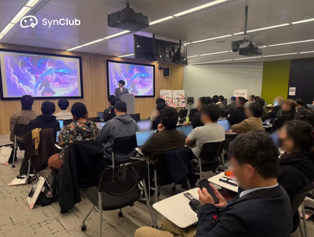本イベントでは、生成AIを活用したコンテンツ制作の最前線をテーマに、Google Cloud講師によるAIセミナーや、AIクリエイターによる活用事例の紹介。さらにSynClubの新機能「アニショート」の発表および体験会を実施。会場には多くのAIクリエイターや開発者が来場し、盛況のうちに終了いたしました。 |