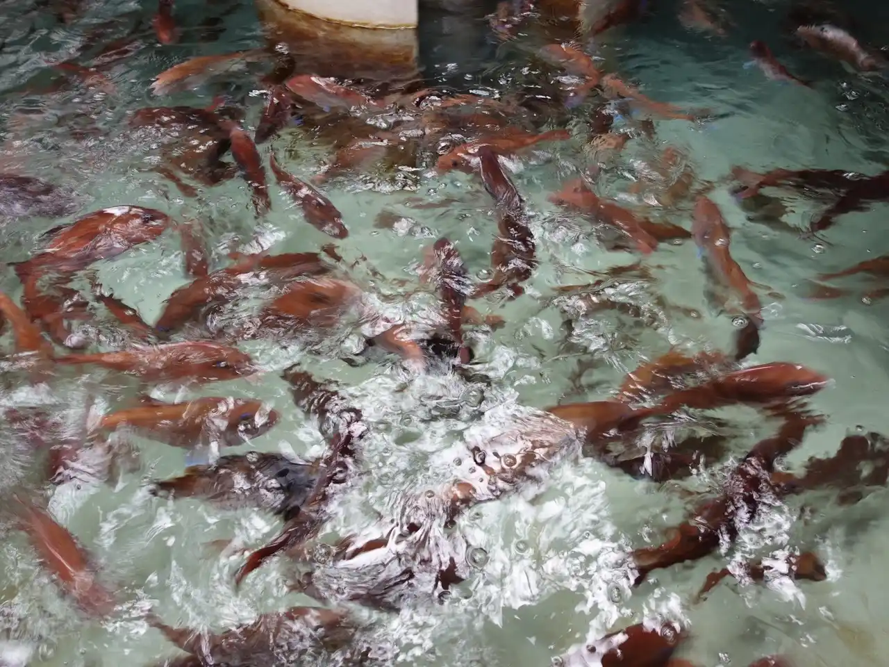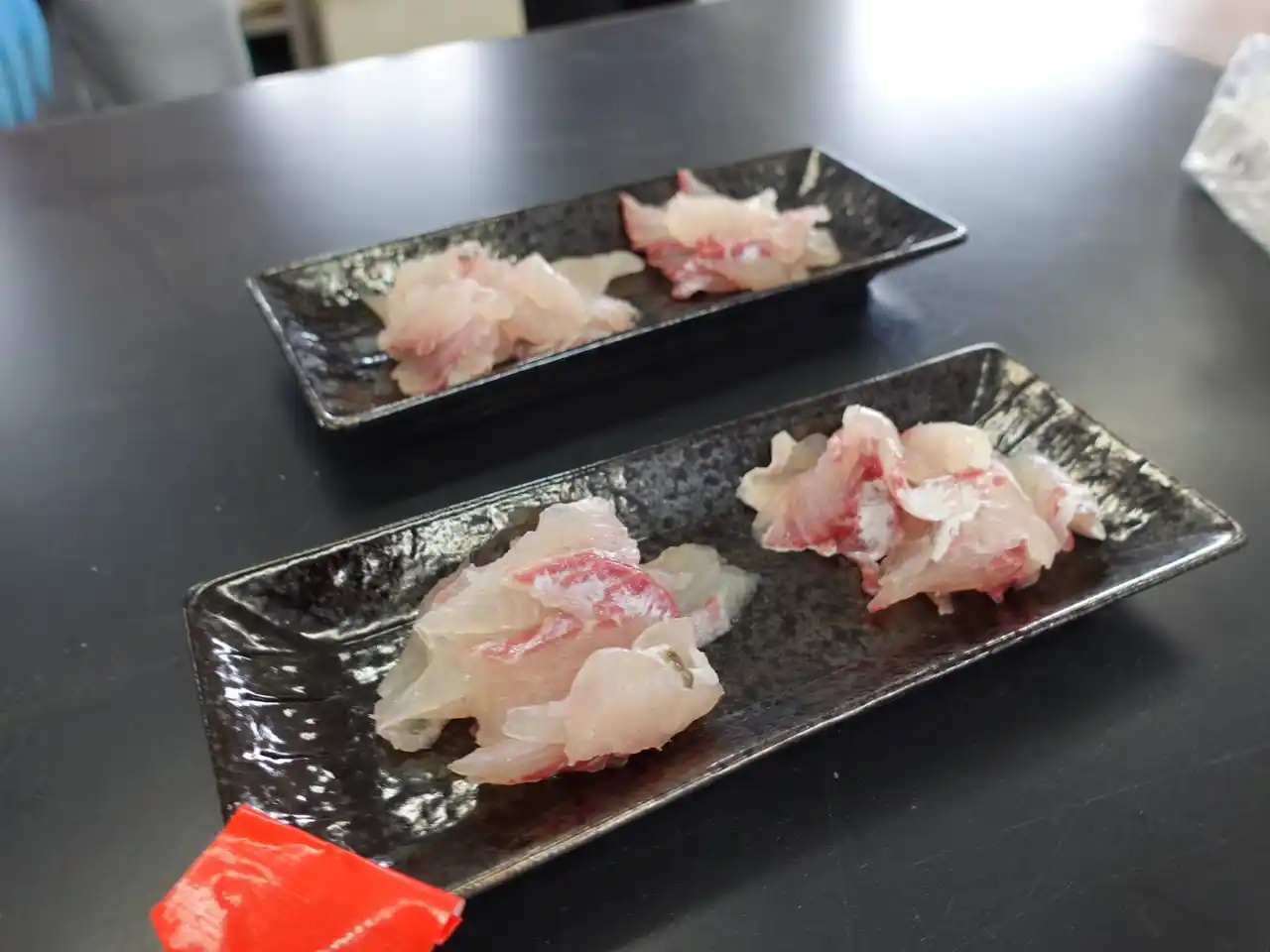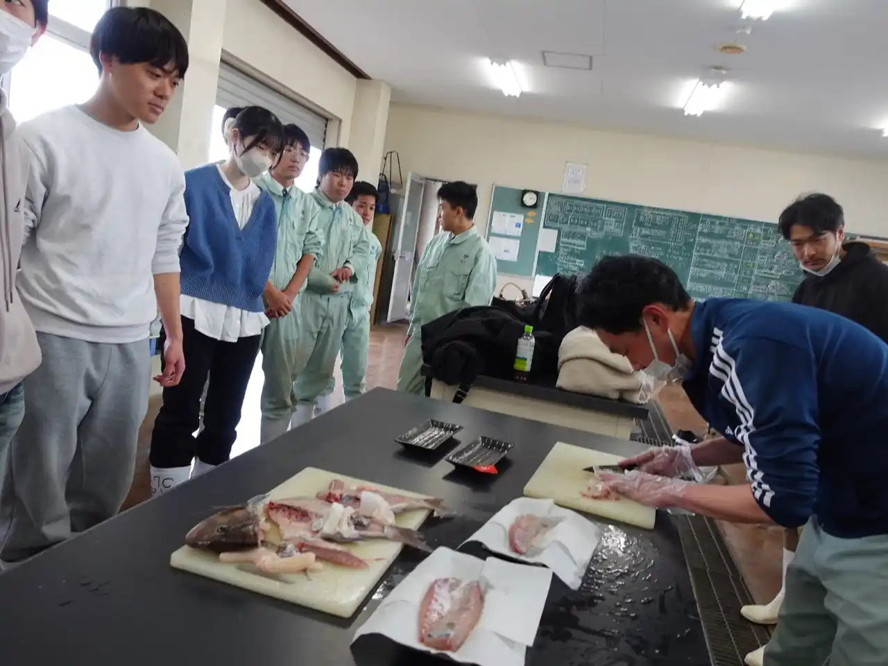 試食会では、茶鯛は通常のマダイと比べて身に弾力を感じるとの声もあがりました。餌やりの様子も見学し、学生・生徒が一つひとつの工程を丁寧に積み重ねていることが伝わりました。 |