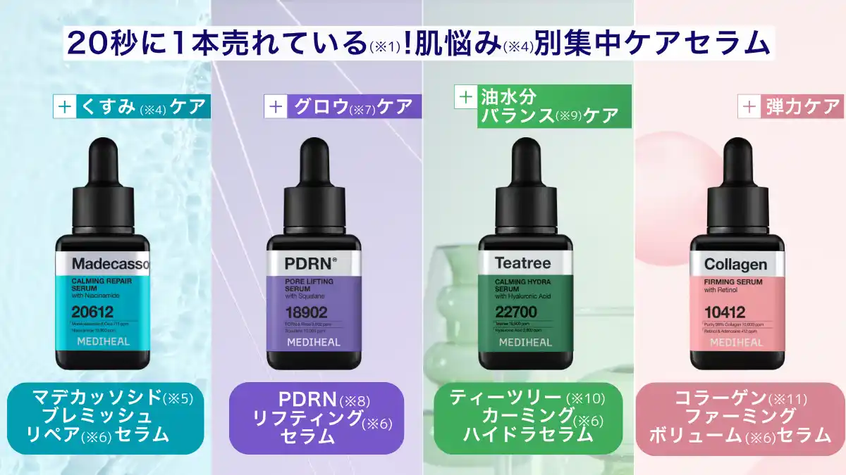 そんなMEDIHEALから、20秒に1本売れている(※1)集中ケアをサポートする「スクエアセラム」と、 |