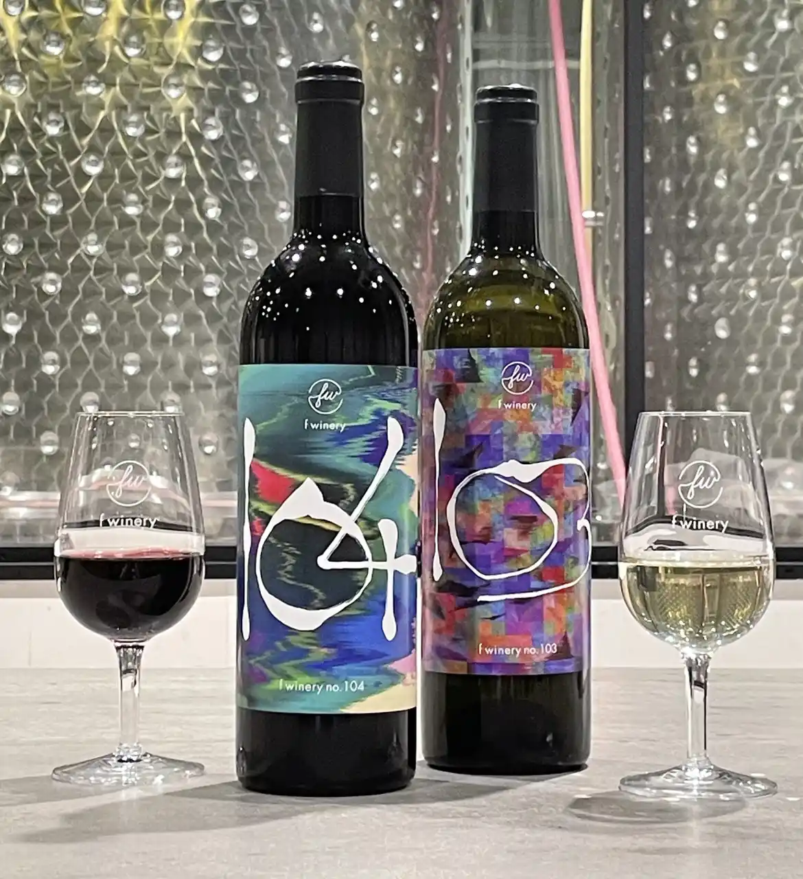 【NEW・数量限定】「f winery no.103」ボトル(750ml) ¥3,520(税込み) 【数量限定】「f winery no.104」グラスワイン