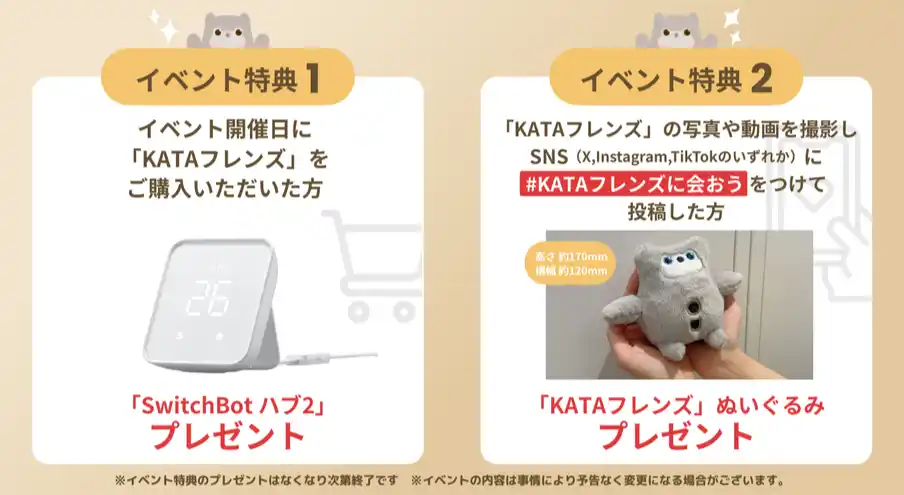 この週末「KATAフレンズ」に会いに来ませんか?見て、触れて、体験。購入者には「SwitchBot ハブ2」、SNS投稿でオリジナルぬいぐるみプレゼントも