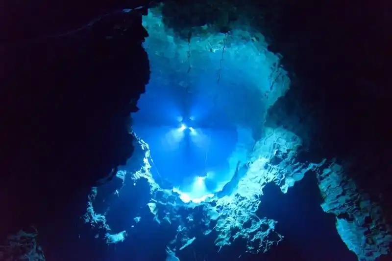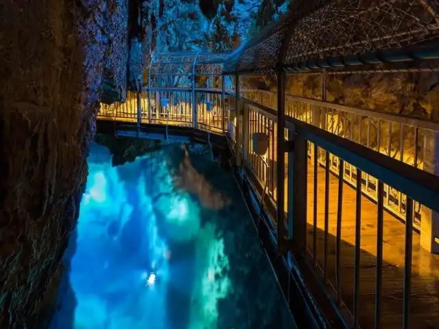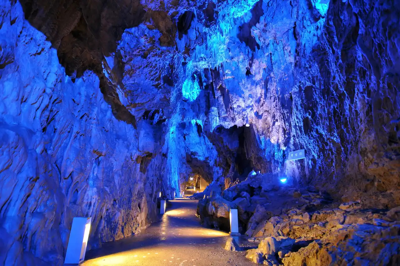 4.地底湖:水深約98mを誇る国内有数の深さの地底湖は、長い年月をかけて石灰岩層でろ過された清らかな湧水に満たされています。神秘的な青色は「ドラゴンブルー」と呼ばれ、その高い透明度と幻想的な景観が多くの来訪者を魅了しています。 |