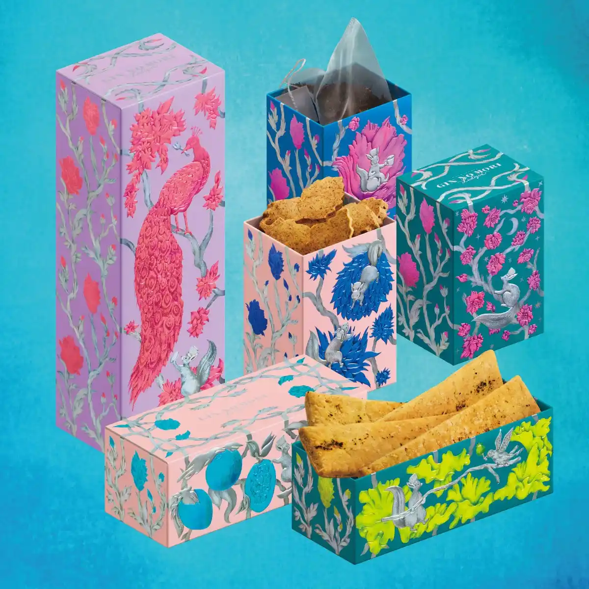 こだわりのデザインボックスは、並べるとすべての絵柄がつながる仕掛けになっており、思わず集めたくなる楽しさも魅力のひとつです。 |