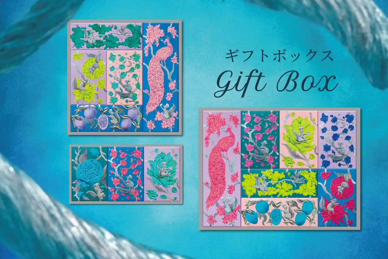 お好きな「Ludique Coffret」をオリジナルのギフトボックスに詰め合わせることで、自分だけのギフトボックスをお作りいただけます。 どの組み合わせでも絵柄がつながり、並べるとまるで一枚の絵画のよう。 |