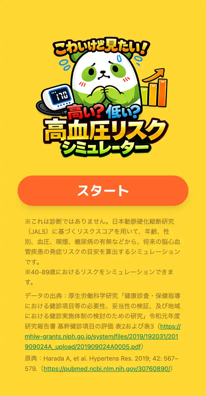 ※高血圧リスクシミュレーターはリスクの目安を確認して参考にするためのものであり、診断ではありません |
