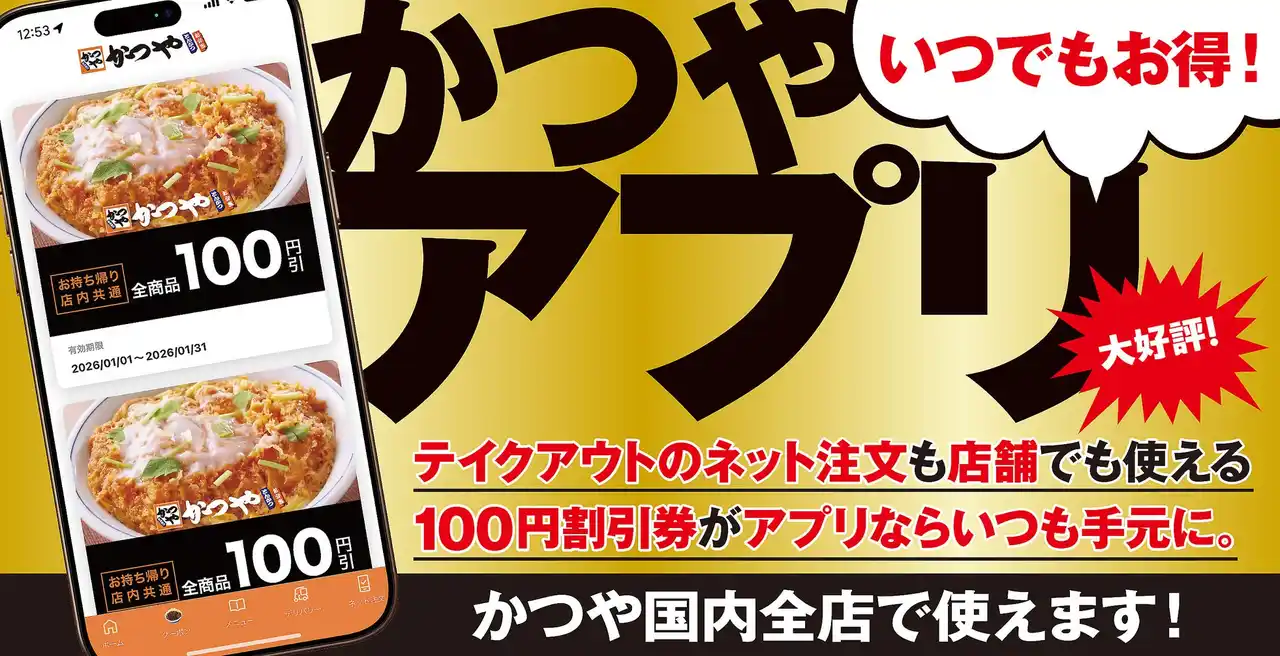■かつやアプリなら、100円割引券がいつでもお手元のスマートフォンに
