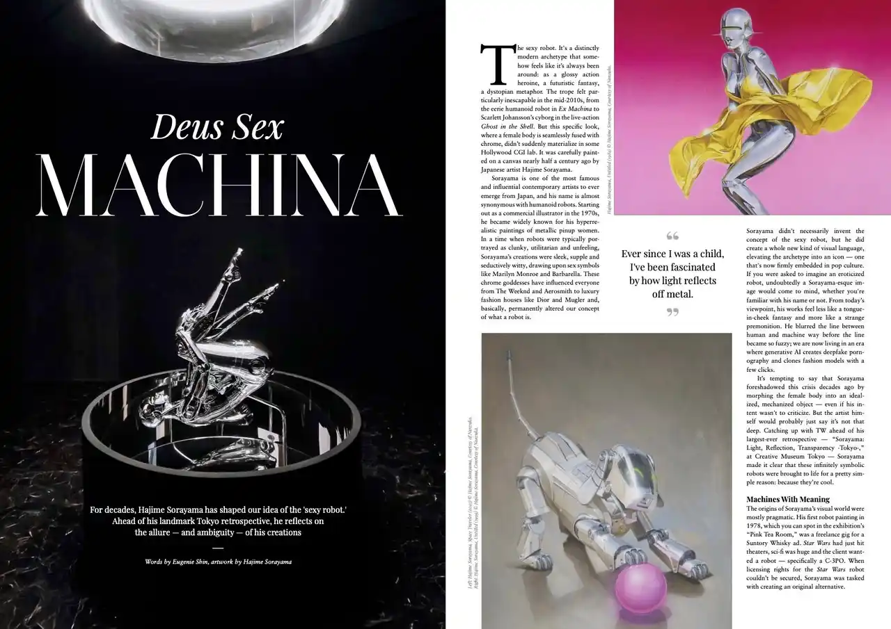 「セクシーロボット」の生みの親として、約半世紀にわたり人間と機械の境界を問い続けてきた伝説的アーティスト、空山基。東京で開催された大規模なレトロスペクティブ展にあわせた本インタビューでは、DiorやThe Weekndなど世界のポップカルチャーに多大な影響を与えた彼の作品の魅力と、その根底にある「カッコよさ」へのシンプルで揺るぎない探求心について迫ります。 |
