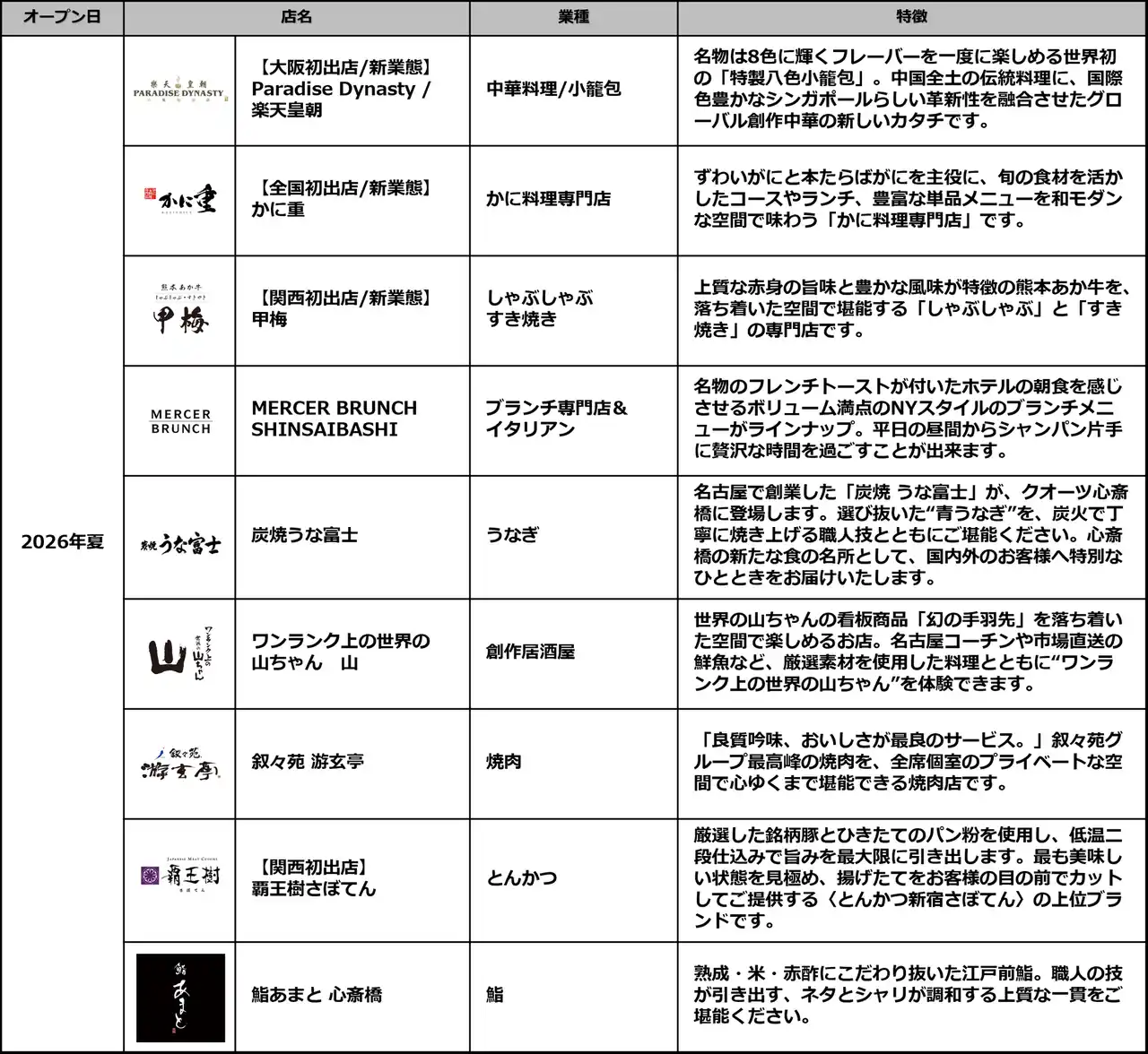 2026年夏/10店舗、2026年初夏~秋/4店舗 |