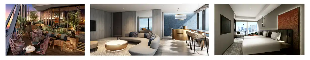 本施設の16~28階には、「ザ・ゲートホテル大阪 by HULIC」関西の旗艦ホテルとして2026年6月15日(月)オープン。「ザ・ゲートホテル」ブランド最大の223室の客室数を有し、地上約 120m の最上階には、大阪の景色を一望できるルーフトップバーを設置。その他ホテル館内にはレストランや宿泊者専用のラウンジ、フィットネスジムを備えております。心斎橋の魅力を感じる上質な滞在を、ぜひお楽しみください。 |