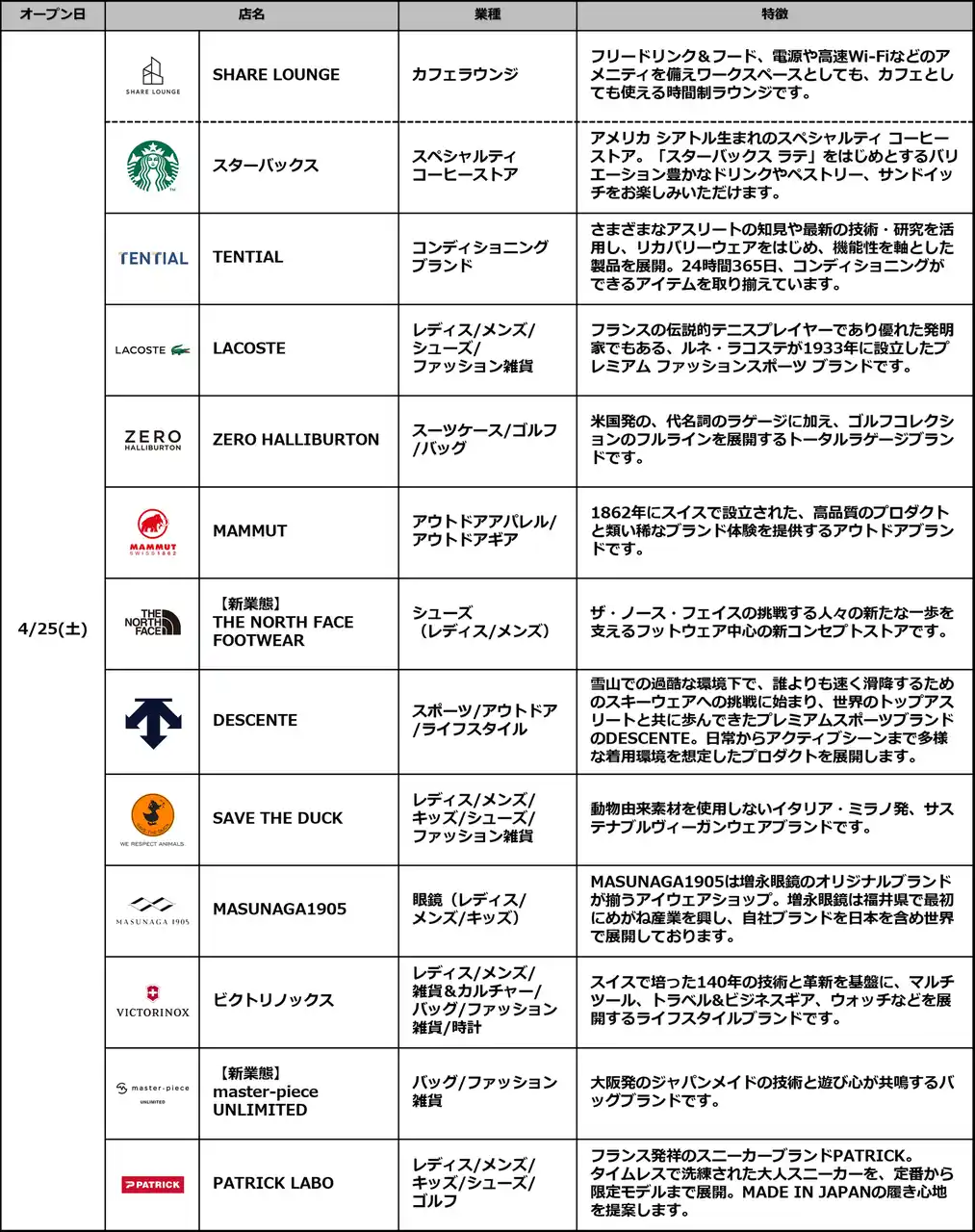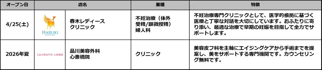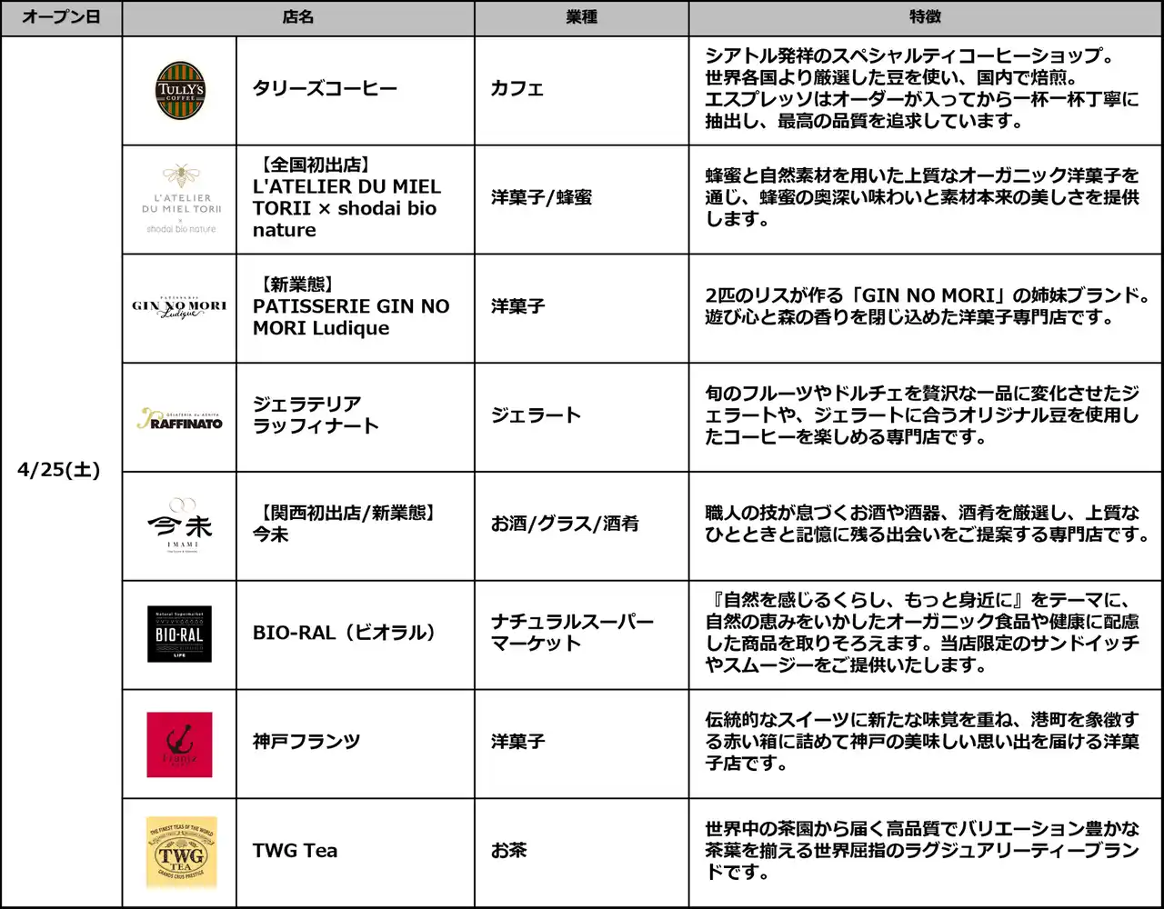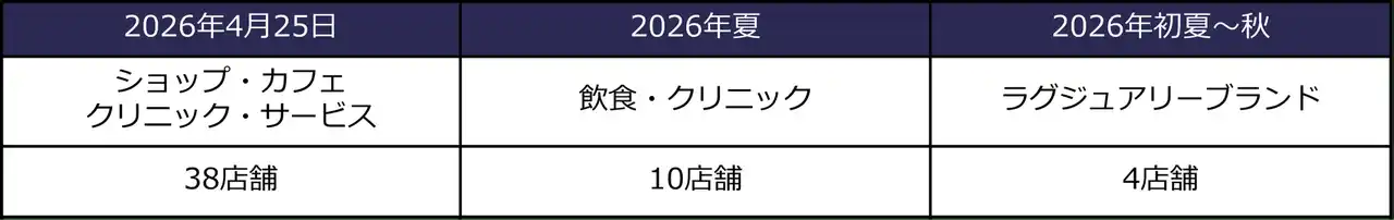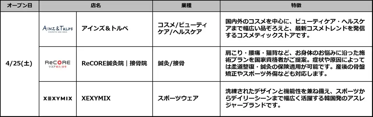 ・開業日 :2026年4月25日(土)/38店舗 |