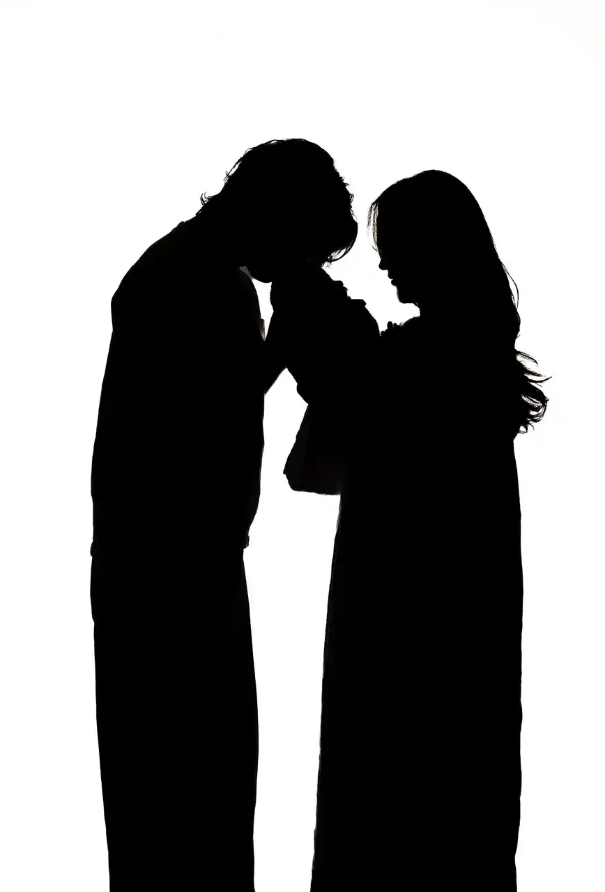 生まれたばかりの命を見つめる家族のシルエット。祝福される時間は、家族の記憶になる。 |